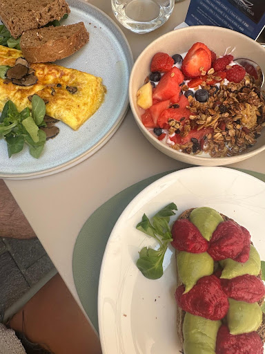 I ordered the avocado toast with scrambled eggs well done with a peach tea. My husband got the pancakes with Nutella and strawberries with a Chai latte. The food came out SO quickly! I couldn’t even believe it (especially after this many weeks in Europe getting used to the slower pace at restaurants). The service was friendly, attentive, and welcoming. The food was perfect! Exactly what we were wanting after weeks without American style breakfast.