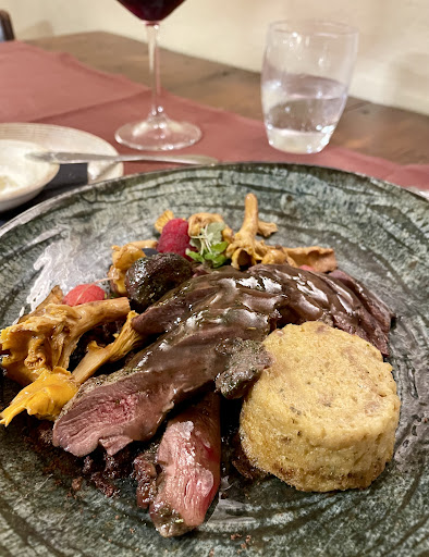 I was simply blown away from the very beginning- by the appetizer bread with home -made butter with hint of pistachio. The pepper/chili-infused jam provided a unique twist to the cheese plate that was sourced from local goat cheese (from mature to fresh). Of course, those cheese also tastes magnificent with traditional plum jam. For main course, an interesting fusion between local/traditional dish (veal) with a modern touch - sprinkled with chocolate crumble and wild berries - left an unforgettable note.