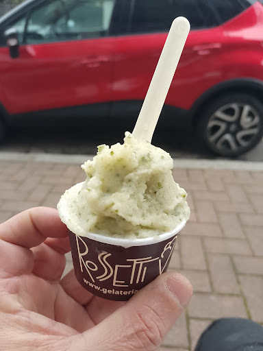 Ieri sera ci siamo diretti in scouter verso la Gelateria Rossetti non nella bottega di Como Centro ma al Laboratorio gelateria di Como alta.....il cielo era sempre piu minaccioso ma non curanti...abbiamo deciso di proseguire ...appena parcheggiati difronte alla gelateria si e' scatenato l'inferno, temporale pazzesco.. La bottega stava x chiudere..ma il sig. E sig.ra Rossetti ci hanno pregato di entrare ....un accoglienza d'altri tempi ,una.gentilezza e un calore umano indescrivibile , abbiamo preso 2 coppette io cioccolato fondente e mia moglie Cocco e cassata del contadino...dopo il primo assaggio il cielo e' diventato blu con un bellissimo arcobaleno infinito..!! Siamo rimasti circa mezz'ora nella bottega con i proprietari facendoci assaggiare circa i 40 gusti ..che io definisco opere d'arti del gelato e dell'eccellenza Italiana ! E' stata una esperienza che non dimenticheremo mai ! Luciano e Carla dal...