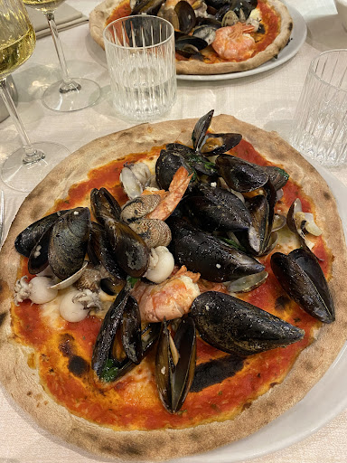 We had a wonderful time! It started with us going in the afternoon to make a reservation for the evening. After telling the gentleman that "we would like a reservation at 8" multiple times and being answered with the sentence "a reservation at 7?" Multiple times we finally decided that we would love a "reservation at 9". When we had arrived at 9:01 we were greeted with a plethora of confusion and were swiftly told to "sit down! Wait!". It felt like home :) after 15 minutes we were asked in italian (which we do not speak, unfortunately. As a side note: i love italian and hope to be able to exchange a few words one day with a real italian without him noticing how bad i am at his own language) if we would like a menu in english or in italian. Suffice it to say it took a few tries for us to understand what we were being asked. Eventually, god bless us, we realized what these wonderful people were asking us and we answered "English! Grazie!" but we had apparently missed the mark.... because, and for the life of me i still do not quite understand how, we were actually told our table was free! After we had exclaimed "oooooh! Sorry, that's what you mean" and they had repeated "oOOoooHHooHHh hahahahah" we were brought to our table under the wonderful bright white lights. We ordered a bottle of wine and a couple of pizzas. What we didn't realize is that our pizza came with an insightful lecture! After mispronouncing the word "siciliana" i was told something fascinating about the letter "c" for a good 2 minutes. I don't quite remember what it was, since i hadn't learned italian yet, but i was very grateful for the explanation (i think I'm getting there though). So grateful in fact that i proceeded to ask if they had "Olio al peperoncino" after which the same wonderful gentlemen who had taken our reservation, told us to wait when we arrived at our reserved time, told us our table was free in a language i don't understand and explained why my pronounciation of a word was fundamentally wrong gracefully added that i must surely mean "Olio piccante". What an experience! We'll be back! What fascinates me the most is that this gentleman spoke english flawlessly the whole time!!!! Jokes aside, italy! You're the best! Can't wait to be back! Won't be coming back here though! :)