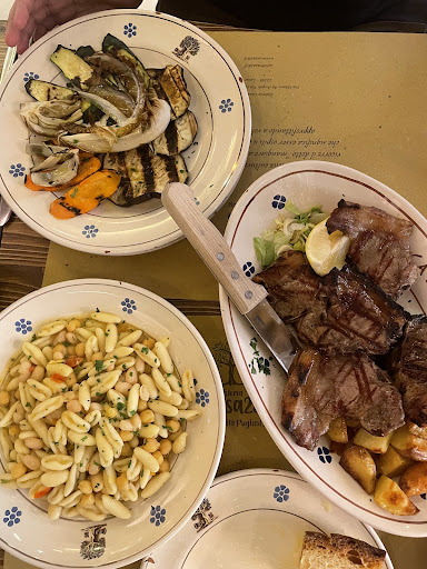 Awful food, a menu with no explanations and a waitress who couldn’t communicate. Result: The worst meal we’ve had in Italy and we’ve been here for 5 weeks. I reread some reviews truly baffled. I’m writing this mainly because I feel it’s only fair to tell others who have limited time here and so many wonderful choices. The meat sauce only had 2 small pieces of fatty meat swimming in nondescript tomato sauce, and the mixed grill was 5 varying cuts of low quality beef cooked with so much gas it tasted like fuel not meat. Our waitress didn’t speak Italian well nor English, which I guess is why she told us the mixed grill had lamb on it and a little of “everything” as she pointed to the meat section of the menu listing various types of meat. She couldn’t explain anything we asked about. And she didn’t bother to tell us the mixed grill came with potatoes when we ordered a side of potatoes. (There were only 2 of us) The atmosphere here is cute and the location is a magnet. But this is a poor representation of food from Puglia or even Italy. This is a meal we’ve will remember for all the...
