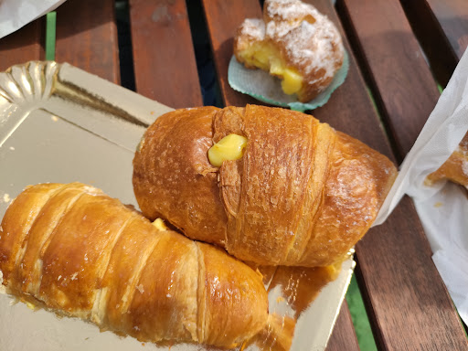 Entrati per la prima volta in questa pasticceria dopo un esame al Sant'Anna. Commessa poco affabile che dopo averci servito è sparita nel retro. Mia figlia ha preso una tartelletta ai lamponi e mentre la mangiava entusiasta ha trovato un lampone con la muffa. Ormai l'aveva quasi terminata quindi sono andata al bancone e ho fatto presente l'accaduto ad un ragazzo sul retro, il quale cortesemente si è scusato e ci ha chiesto se ne volevamo un'altra ma abbiamo rifiutato. Va bene che esternamente la muffa non si vedeva, ma significa che non era fresco o conservato male. Fortunatamente è andata bene...