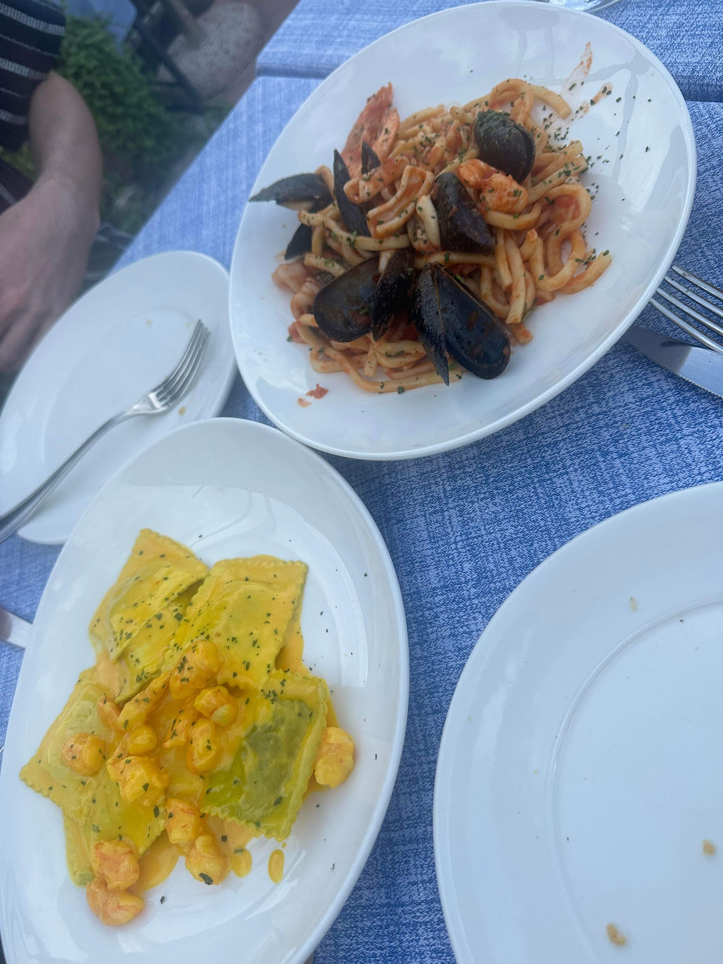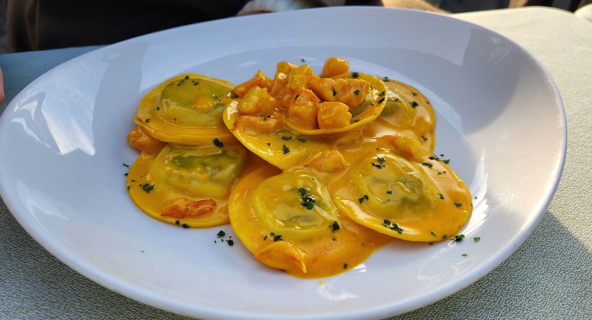 We ordered ravioli and seafood pasta, and calamari to start. The calamari was dry but ok, but the pasta was terrible. The ravioli had a lingering aftertaste that haunts me till now, and was rock hard inside. The seafood pasta had a good sauce, but the seafood was not fresh and the pasta was terrible.