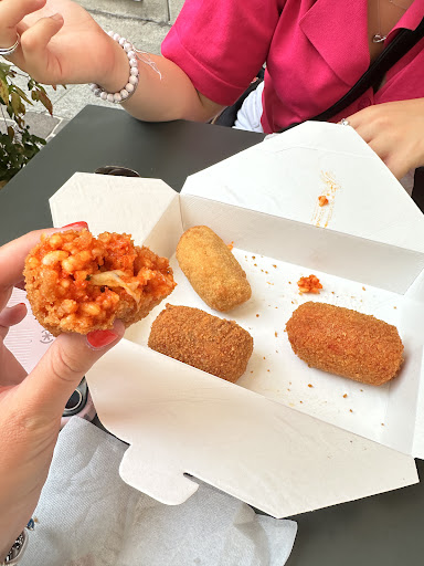 Got pizza by the slice, and to be honest, it was terrible tasting. It was 7 € for 2 slices of margherita, which is crazy considering at most restaurants you can get an entire margherita for less. The people at the counter were quite mean, they yelled at us everytime we came back. The menu on the wall says prices, but very tiny in the corner it says that those are the prices per 100 grams. I thought I would be paying around 3 or 4 euros, but it ended up being 7. For two tiny pieces of pizza. Also whatever was in that sauce made my stomach very upset, and I have been stuck in the bathroom for most of the day. Would not recommend...