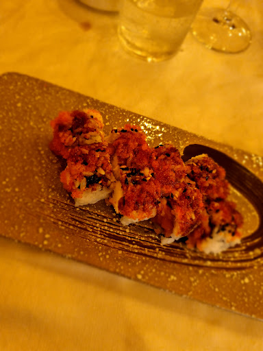 Read moreLa posizione è ben raggiungibile infatti si trova appena fuori dall'autostrada, ma questo è anche uno svantaggio in quanto il luogo pieno di capannoni non è il massimo. L'ambiente interno è confortevole ma un po' poco illuminato secondo i miei gusti, all'interno fa un po' freddo, il bagno è decente, insomma pulito ma non troppo infatti il lavandino è un po' incrostato e non mantenuto molto bene. Ora passiamo al cibo, con prezzi nella norma per un sushi bar che varia da 8€ a 16€ circa, la qualità è buona e il pesce ottimo. Il menù è vario e soddisfa tutti i gusti con anche dei ravioli o delle zuppe per che vuole rendere il suo pasto più vario Il personale è giovane e gentile, unica cosa negativa sul servizio è che durante il pasto un venditore ambulante è entrato nel locale offrendomi delle rose. In generale il locale è buono. Quattro...
