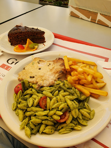Very good value meals here. On weekdays it is buffet style (11:30-15:00) with about four options for both first and second meals, as well as side dishes, several salads and desserts. Relatively cheap and very good food. The service is fast and the staff is very friendly. The place is clean including the toilets. Greatly...