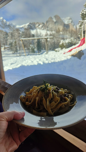 MERAVIGLIOSO È stata un'ottima e meravigliosa scoperta. Partiamo dal viaggio con la "navetta" che ti porta su a 2000 metri passando per sentieri in mezzo alla natura regalandoti un'esperienza molto suggestiva e divertente. Una volta arrivati avrete un panorama fantastico su Moena e montagne. La baita è veramente molto carina calda e accogliente. Personale Fantastico, camerieri e cameriere Gentili e disponibili per ogni spiegazione sui loro piatti cercando anche di consigliarti al meglio, soprattutto sull'abbonamento dei vini.
