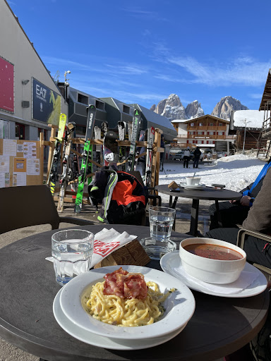 Good place for a coffee or a beer; take a break before getting back on the lifts. Wine is expensive, so stick to the basics here. Snacks that are in the glass are OK, too. Young girls run the place, so it's pretty much self-serve....