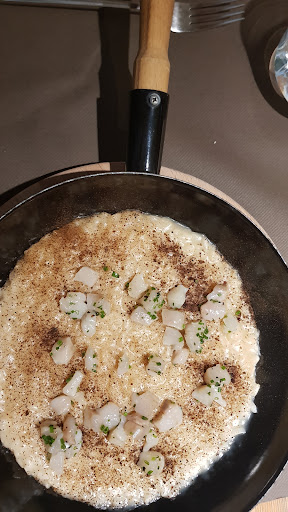 È sabato 2/12, fuori nevica e noi siamo in due coppie con un cane, ci fanno accomodare nella sala da pranzo in fondo in modo già un po’ troppo scorbutico e la titolare al bancone più volte ci chiede “ehi dove state andando?”, anche se la sua assistente ci aveva già segnato ed indicato il tavolo al quale accomodarci. Ordiniamo un antipasto e tre primi ( da servire così: antipasto e subito di seguito, anche assieme se fosse, al resto dei primi… glielo avevamo espertamente spiegato al cameriere ) e poi un secondo ma dall’ antipasto ai primi passano 50 MINUTI ed invece solo, per fortuna, 5 minuti al secondo e il cameriere non capisce che il via alla comanda successiva la potrebbe dare anche qualche minuto prima che il commensale finisca il piatto così la preparazione intanto va avanti e ci sarebbe un’ottima continuità del pranzo. Il cane non ha mai disturbato e noi non abbiamo rovinato l’ottima atmosfera che c’era a parte, appunto, il cameriere che non essendo, secondo me, pronto ad affrontare la stagione ci ha accolto in modo molto duro e rispondeva non cercando di trovare un compromesso con i commensali essendo scocciati dall’attesa anche perché siamo entrati alle 12:20 e alle 13:20 stavamo ancora aspettando il primo. Consiglio, sempre per mio umile parere, di far capire a chi lavora qui dentro, anche solo stagionale, che chi paga il loro e suo stipendio non è il solo titolare ma sopratutto i clienti, che se trattati in modo decente recensiscono positivamente al locale e gli danno visibilità e modo di far arrivare a molte persone il buon servizio che potreste servire e ottimi pietanza...