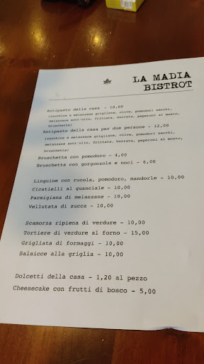 My family and I were staying in the next village and read all the good reviews so thought we'd try la Madia. We had such nice food with wonderful service that we had to return on our last evening before returning home. It's a family run and to say 'service with a smile' is an understatement! Very relaxed atmosphere suitable for all kinds of occasions. Whilst the menu is not that large everything is freshly prepared and delicious. My daughter and my wife are vegan and there were plenty of options and dishes available to them. The dessert treats with complementary Muscato is a must! House white wine is wonderful! Very reasonable prices too! Would recommend to...