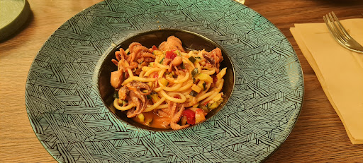 Abbiamo ordinato l’intero menu, dolce incluso. Benvenuto della cucina: purea di patate con frutti di mare, passabile; antipasto: tonno (a mio parere troppo cotto) con insalata scondita, carote grattugiate con una spolverata di pepe e yogurt bianco; Primo: caserecce con zucchine, salmone e menta. Pasta scotta e insipida mantecata con burro alla menta, che credo fosse l’unico aroma presente nel piatto, in ogni caso impercettibile. Con non poco sconforto abbiamo deciso di dare una ulteriore possibilità provando il secondo. Secondo: filetto di manzo con finferli e friggitelli. Porzione di filetto abbondante ma cotto male (credo solo al forno?), salsa insipida e non ben identificabile, finferli amari, a chiudere una spolverata abbondante di paprika che una volta ingerita donava una spiacevole sensazione in bocca. L’unica cosa che si salvava nel piatto erano i peperoni, leggermente arrostiti. Dolce: abbiamo scelto di non prenderlo perchè la cena è stata troppo deludente, magari sarebbe stato buono, chi lo sa. Costo 15€, a mio parere ingiustificato (ho visto raramente superare i 12-13€ per un dessert in ristoranti di una certa categoria).