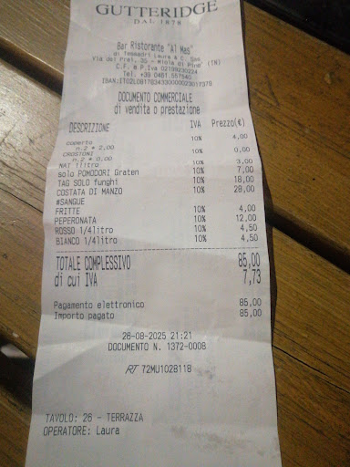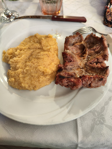 Read moreGiungiamo nel locale. Ci accoglie un forte odore ovino. alla vista la sala da pranzo classica di montagna, ci accomodano al tavolo. Ci servono subito due crostini di pane 1 con pomodorini 1 con del gorgonzola... Guardando al di sopra della mia testa noto una ragnatela con un insetto inressichito.. Arriva il cameriere per l'ordine con un fare non proprio adeguato al prezzo finale ordiniamo. dopo poco ci portano il bere portandoci 2 quartini anziché 1 bichiere +un quartino come richiesto. pomodori gratinati buoni ma mancava sale. Poi arriviamo alla costata che non ci stava sul piatto che avevano preparato precedentemente. dopo un po' arrivano le fritte, poche ma comunque non sapevano dove metterle perché servite direttamente da vassoio. Fatto notare al cameriere, ha risposto "che c22o vuoi che ci faccia io?". Abbiamo chiesto di avere un'aggiunta, mai arrivata così come il formaggio per le Tagliatelle, porzione fatta a simpatia da un vassioio. Comunque molto buone. Il conto ci ha lasciati basiti per la discordanza con qualità,...