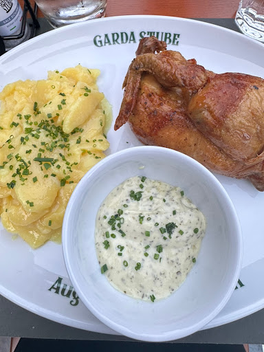 Read moreSinceramente mi aspettavo di più per un nuovo locale così tanto pubblicizzato, arriviamo in due persone, alla richiesta di cosa beviamo rispondiamo per una non filtrata media e di una birra ZERO alcool se disponibile altrimenti si passa all’acqua, beh ci arriva una zero per modo di dire perché il tasso alcolemico è pari non superiore al 0,5% quindi chiediamo la sostituzione che avviene senza problemi, ordinaiamo un mezzo pollo e delle puntine di maiale, chiedo che contorno hanno le puntine e mi viene detto crauti, bene allora mi può gentilmente portare delle patatine fritte come extra ? Oltre al fatto che prima arriva il pollo quindi la mia signora inizia a mangiare e dopo 5 minuti arrivano le mie puntine con la sorpresa del contorno con una bella porzione di patate lesse con salsa ( buone ) ma sempre patate, quindi quelle fritte non servivano …. Ma vabbè diamo il ragionevole dubbio di questi errori perché hanno aperto da poco e la formazione del personale magari non è proprio stata completata. Comunque essendo un beer garden Angustiner, ordinando 3 birre medie ho visto che nella spillatura tipica e classica bavarese non è stato rispettato il tempo di riposo prima di completare la spillatura e di servirla al tavolo con il...