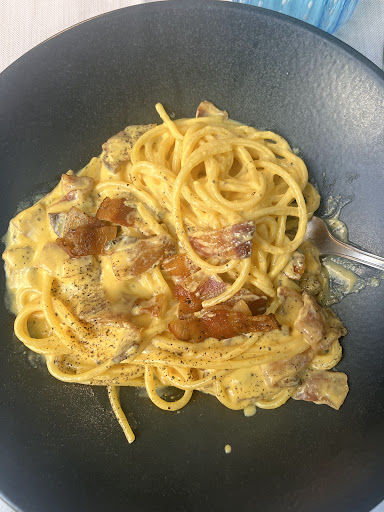 Read moreThe carbonara, for me, was the best one I’ve had so far. No salt needed, no pepper needed, the balance of the guanciale with the egg sauce simply amazing. I had a glass of local amazing, delicious Rose, forgot the name, but ask the waiters for the local one, worth it. For dessert I had the chocolate brownie with molten chocolate lava on in the inside and it came with a scoop of ice cold vanilla ice cream - it’s a 10’ner. The most beautiful thing though is the location - those Mediterranean gardens with the ponds are beautiful. The restaurant is part of a complex called Du Parc et Du Lac hotel. Give it a go and enjoy the gardens and the restaurant. Oh, we had no reservation and got a table pretty fast...