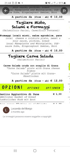 Read moreVisitando il bellissimo borgo antico di Canale di Tenno con i suoi caratteristici vicoletti, vado in cerca di un posticino dove poter pranzare, proprio nel centro storico vedo un locale con la scritta "Locanda del Borgo" allora ho pensato questo fa per me, devo dire sinceramente che il nome mi ha attirato tanto come tutta la location, sembrava veramente di mangiare in una antica locanda del passato. Per fortuna avevo prenotato il tavolo perché il locale era pieno. L'accoglienza più che ottima, personale gentilissimo, ne approfitto per salutare le tre ragazze, Federica, Chiara e Giada per la loro simpatia, gentilezza e cortesia, un caro saluto anche ad Alessandro per la sua accoglienza. Mi faccio consigliare con un bel tagliere di salumi e formaggi tra cui non poteva mancare la famosa "carne salata" uno dei piatti tradizionali della cucina trentina, vi garantisco, una bontà assoluta!!😋😋 Le portate sono abbondanti, un solo tagliere mi è bastato per pranzare. I prezzi sono buoni, considerando che siete in un locale situato in uno dei borghi più belli d'Italia, quindi direi qualità/ prezzo ottimo. Se andate a Canale di Tenno non potete non fermarvi in questa ottima locanda, non ve ne pentirete. Ringrazio tutta la ciurma della Locanda per l'ottima accoglienza e per il divino pranzetto, spero di venire ancora a trovarvi....