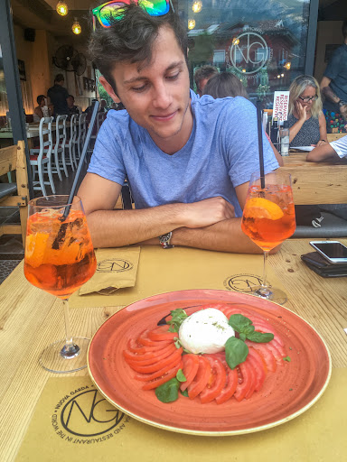 Read moreNuova Garda wirbt damit, sie sei die wahrscheinlich beste Pizzeria und Restaurant der Welt, natürlich etwas übertrieben. Sie machen aber einiges richtig, z.B. bei der Pizza und den Getränken. Das Ambiente ist einfach und modern. Sie ist täglich gut gefüllt und dann wird es sehr laut. Musik läuft irgendwo in der Küche, aber die hört man dann nicht mehr. Um bedient zu werden, muss man oft deutlich winken. Die Bedienung ist durchweg jung und freundlich. Die Karte bietet eine gute Auswahl. Für meinen Geschmack wirklich zu empfehlen sind Pizza oder Gerichte mit Fisch und Meeresfrüchten. Der Pizzateig und Belag sind perfekt. Einige wollen vielleicht nachwürzen, aber für mich schmeckt man wirklich die puren, frischen Zutaten. Wir haben uns nach dem Essen immer sehr wohl gefühlt. Salz und (geschroteter) schwarzer Pfeffer in der Mühle stehen auf dem Tisch, habe ich aber nicht benötigt. Wer es schärfer möchte, kann nach Chili-Öl fragen. Die wenigen Nudelgerichte auf der Karte sind keine deutschen Riesen-Portionen, sondern eine ortsübliche Größe. (In einem anderen Restaurant in Torbole war die Lasagne sogar nur halb so groß.) Die Spinat-Gnocchi sind richtig gut, aber auch nicht genug um satt zu werden. Die Salate sind Bowls, also einfach die Zutaten getrennt auf einem großen Teller, sogar der griechische Salat, aber die Zutaten sind frisch und die Portionen sind super. Alles ohne Sauce - man muss sich dann selbst Essig und Öl darüber machen. Das Einzige was mir nicht geschmeckt hat, waren Steinpilze: Konsistenz und Geschmack sind unangenehm. Ich bleibe dabei: Man kann hier gute Meeresfrüchte essen und eine bessere Pizza habe ich wirklich weit und breit nicht gefunden. Die Preise sind endgültig - es kommt kein Cuperto (Trinkgeldaufschlag) dazu. Wenn man am Tisch bezahlt, bekommt man dann auch noch einen Grappa oder Limoncello aufs Haus und kommt gerne wieder. Wir haben uns eine ganze Woche einen Tisch fürs Abendessen reserviert und es...