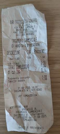 Read moreLet's clarify first of all that this is not a patisserie, we noticed that every place in Italy calls itself a patisserie, let them take a tour of Paris and see what a patisserie is. It's half a confectionary, there are some cakes and that, but it's not a patisserie. We came to this town quite by chance, we saw a "patisserie" sign and entered. Cute little place, service a bit passive but we didn't come for that. We ordered coffee, cake and ice cream, sorry, but nothing of what we ordered...