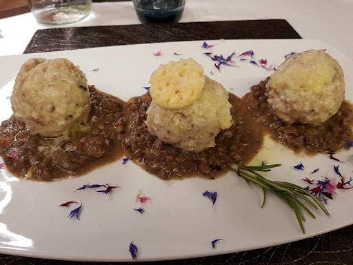 Read moreDi fronte a tanta banalità diffusa nella ristorazione italiana, appena trovo un vero ristorante quasi quasi mi commuovo. È il caso dell'Aquila Nera , che mi ha davvero positivamente sorpreso e soddisfatto oltre le aspettative. Qui durante la nostra breve vacanza siamo tornati tre volte , solo perché lo abbiamo scoperto tardi altrimenti ci saremmo andati molte più volte. L'ambiente elegante e la sorridente accoglienza immediatamente ben dispongono i clienti. I tavoli sono ben apparecchiati e le poltroncine comode. Il menù offre specialità locali, ma anche piatti tradizionali e di pesce; la carta dei vini è ampia e le ricariche eque. Il pane viene fatto dallo chef e presentato su un tagliere con il burro : ogni volta cambia il sapore, noi abbiamo potuto assaggiare quello allo zafferano, quello alla cipolla e quello alle olive. La nostra scelta è stata la seguente : il tagliere Dolomiti, un affresco di salumi e formaggi bello da vedersi e buonissimo da mangiare; il risotto alle mele splendidamente mantecato e ben presentato; le tagliatelle fatte in casa con i funghi porcini abbondanti e perfettamente al dente; la trota saporita e freschissima ; il filetto di maialino tenero e gustoso; la cotoletta viennese che ,pur preferendola, non ci ha fatto rimpiangere la 'milanese' ; infime lo strudel di mele , commuovente, con la salse di vaniglia e piccoli frutti di bosco intorno... Tutto i piatti vengono guarniti con più contorni anch'essi deliziosi e perfettamente abbinati. Il servizio è attento e professionale, mai invadente sia per le portate che per il vino stappato e servito con tutti i crismi. I camerieri sono tutti bravi , ma vorrei citare Hassna e Karim due bravi giovani dai modi educati e particolarmente gentili. La proprietà, madre , padre e figlio sono presenti in sala e attenti ad assicurare il massimo confort ai clienti. Il mio cane Blu è stato adeguatamente accolto. Ci ritorneremo sicuramente il...