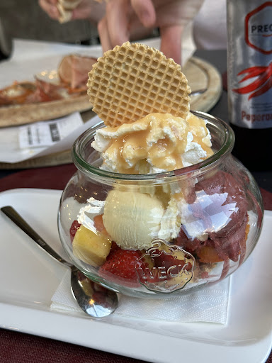 We had pizza for lunch in this restaurant. The food was tasty, prices reasonable (coperto 2€/person). We returned after a few hours for an ice cream which was also really good, but I saw that the lady behind the counter struggled with English. When I told the lady that I would like to pay by card, she said to her colleague in Italian (she didnt know I understood her) “what does she think when she wants to pay for an ice cream by card” and looked at me angrily. This felt very rude to me, if she had told me before that it was a problem to pay by card smaller amount of money, I would have paid in cash, the comment was completely unnecessary....