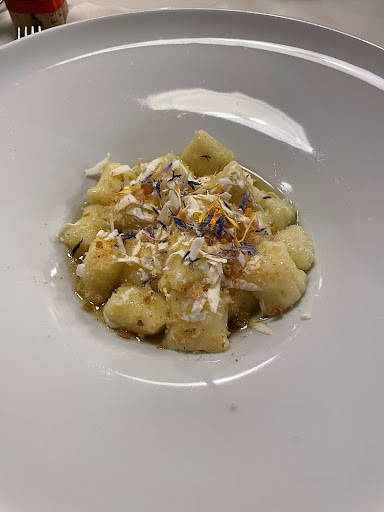 Consigli, tra colleghi, per crescere: da chef a chef - a mio modesto parere - sono da migliorare (sia nel ripieno sia nell'eccessivo spessore della pasta) i tortelli ai porcini. Da rivedere completamente invece il dolce "Bosco" modificato con un anonimo gelato alla vaniglia che sicuramente toglieva senso e profondità a un'ottima idea di fondo. (mettere sul piatto frutti di bosco sicuramente non dei dintorni e delle fragole - che non stanno nel bosco! - con ancora il picciolo attaccato e con qualche giorno di stanza in cella frigorifera è un errore di distrazione veramente poco piacevole ragazzi.) Servizio: le ragazze davvero molto gentili e disponibili; consiglierei solamente di far assaggiare i vini prima di versare l'intero calice così da evitare spiacevoli imbarazzi nel caso in cui il vino non incontrasse i gusti degli ospiti. Apprezzatissimi l'uso del salvagoccia per la mescita e la descrizione dell'uvaggio. La strada è quella giusta, ragazzi: con qualche piccolo accorgimento sono sicuro che arriverete davvero molto in alto in una realtà che ha estremo bisogno di un locale come il...