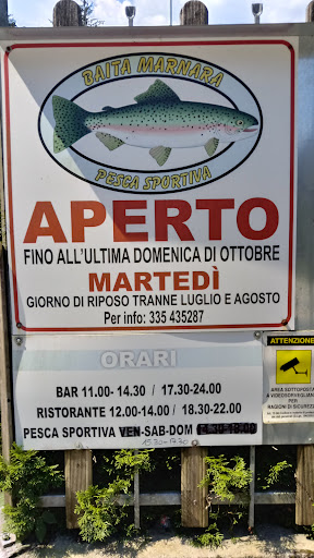 Read moreIl luogo è carino ma nn aspettatevi una cucina da chef stellati. La loro specialità è la torta, allevata nelle loro vasche adiacenti al locale. Il mio giudizio si basa su quello che si è mangiato: trota salmonata affumicata (6 fazzolettini sottili in tutto) con crostini e burro, piatto buono, gustosa la trota i crostini erano in realtà dei filippini (grissini corti) industriali, prezzo alla carta 13 €, sarebbe stato meglio un vero crostini di pane fatto in casa tostato al momento. Piatto del Marnara: trota cucinata 3 modi diversi, 2 fettine di quella affumicata ( vedi sopra), trancetto di trota in capriole, bocconcini di trota tutto freddo alla carta 13€. Ultimo piatto, trota fritta in padella, media spazzatura, 13€ Considerato ke le trote sono allevate in vasca e nn pescate in torrente, trovo che i prezzi sono alti. Con la trota abbiamo mangiato un misero antipasto in 3, bevuto un litro di vino bianco, 3 ottimi dolci totale 84,00€. Il gestore ci ha offerto 2 grappe, ke con la grappa proprio nn erano neppure parenti...