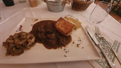 Read moreUna baita elegante contornata dai boschi, abbiamo cenato all'interno in una sala dall'ambiente molto caldo con travi a vista e vetrate che permettono di cenare osservando il bosco. Piatti ben eseguiti e abbondanti!e nonostante la quantità sono impiattati con molta eleganza. E ripeto, di certo non si va via con la fame, anzi! Servizio impeccabile, anzi se devo trovare una "pecca" (che pecca non è) è il servizio velocissimo. Che piuttosto che attendere oltre 30 minuti tra una portata e l'altra come accade in molti posti è meglio così, però forse consiglierei di dilatare di qualche minuto il tempo tra le portate per dare anche modo di poter apprezzare meglio i piatti. Però bravissimi davvero, anche il sommelier che ci ha servito, ci ha consigliato un vino ottimo spiegandoci anche la filosofia della cantina. Molto apprezzato! Infine il conto che è davvero onesto per la quantità e qualità del cibo. A fine pasto ho ordinato una grappa che al momento del conto mi è stata offerta, il conto inoltre è stato arrotondato per difetto. Due gesti che possono sembrare di poco valore ma che in realtà fanno sentire importante il cliente, ho apprezzato tantissimo. Complimenti, da tornare...