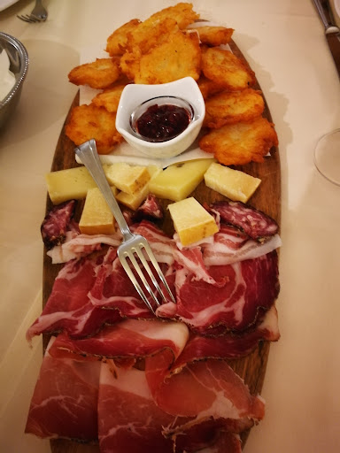 Read moreLocale carino e curato, personale gentile e attento, ma... I tortei di patate - piatto tipico della zona - con affettati e formaggi trentini si possono prendere solo minimo per 2 persone a 17 euro a porzione: sic! Peccato poi arrivi un tagliere unico con una idonea dose di tortei (circa una decina e molto buoni) e di formaggi, ma una dose di affettati davvero scarsa. Per quanto pregiati e locali, molto buoni, gli affettati non sembrano decisamente proporzionati per due persone tenendo anche conto del prezzo del piatto. Sarebbe stato interessante capire come avrebbero spartito la dose su due piatti, visto che non tutti i tipi di salumi avevano fette in numero pari (su 4 tipi, 2 avevano esattamente n. 3 fette), cosa peraltro fatta notare gentilmente alla cameriera. Le verdure di accompagnamento erano una modesta ciotola di fagiolini e "baby carote" al burro (difficilmente dell'orto a km 0) e una mini coppetta con cappuccio, pomodoro e radicchio rosso. Riguardo al dolce, visto il contesto molto curato e tipico, ci saremmo aspettati che tutte le proposte fossero homemade, in realtà questo valeva per 3 opzioni su 6. Buona la scelta nella...