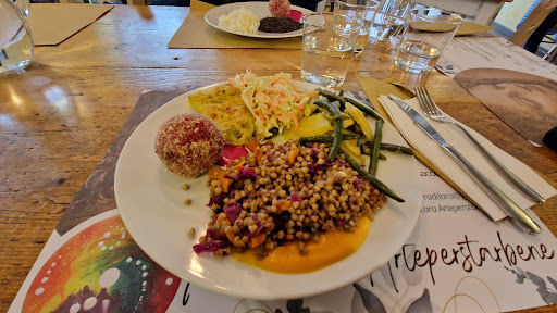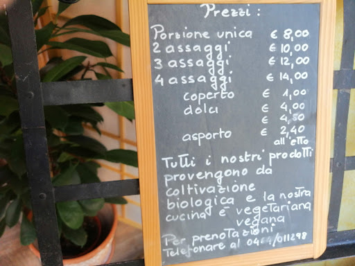 Cibo: veramente buono! sapori genuini e gustosi. Anche mio padre, amante della carne e meno del vegetale, ha apprezzato moltissimo la loro carbonara veggy. Possibilità molto apprezzata di poter comporre il piatto con 1/2/3 o 4 tipi diversi di portate (peccato la scarsa quantità prevista per alcune tipologie, come ad esempio le mini empanadas vegan). Prezzo: assolutamente adeguato alla qualità del cibo offerto, anche se non oggettivamente economico. Altro: si prende l'ordine davanti al bancone con esposti tutti i piatti del giorno, tenuti ben al caldo.