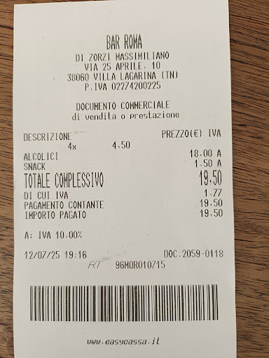 Read moreÈ vero non bisogna più fare paragoni con le lire,ma ci sarebbe voluto l'equivalente di quasi 40.000 lire per bere uno spritz, in quattro. Servito con una striminzita ciotolina di patatine che certo non bastava per quattro. Tant'è che abbiamo rimpinguato comprandoci un sacchetto di chips (1 euro e 50 ). Il tutto per 19 euro e 50: seconda me veramente troppo. Aperitivo...