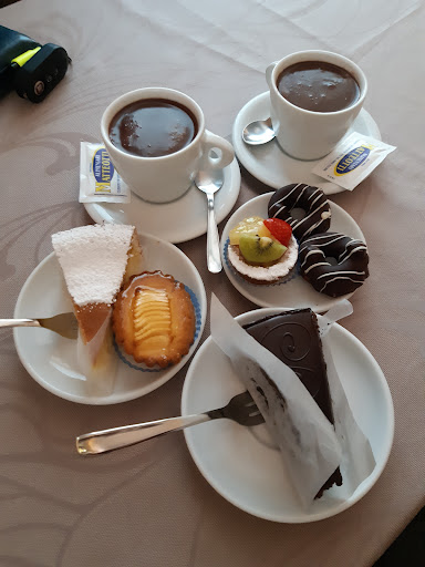 Ho quasi paura a scrivere una recensione viste le risposte della proprietaria 🤣 comunque…. Come pasticceria mi attirava molto da fuori, un po’ vecchio stile, aria di dolci di casa, come piacciono a me. Vado sul sicuro, mi dico, prendo una bella cioccolata calda e mi aspetto che la facciano loro! Mio marito assaggia, invece, un bombardino. Chiedo alla cameriera, dunque, una cioccolata calda con panna. “La panna però non ce l’ho” 🤔 ma come? Va beh fa nulla.