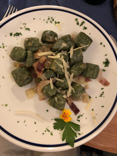 Siamo finiti in questo agriturismo ristorante praticamente per caso e siamo usciti molto soddisfatti. Il posto è molto carino, tutto in legno e con un'atmosfera tipicamente montana, molto rilassata e gradevole. Molto carina l'idea di lasciare nel pavimento una vetrata che dà sulla stalla, con vista sulle mucche che riposano; davvero molto bellina. Il tutto è accompagnato da un servizio efficiente, attento ma non invadente. Passiamo al cibo, in generale molto buono. Noi siamo partiti con dei taglieri di buoni formaggi (un casolet e un formaggio più stagionato, buoni, oltre che un piccolo vassoio con ricotta servita con una special di composta di mirtilli che in realtà mi è piaciuta meno degli altri), e dei salumi di vario tipo molto buoni. Poi siamo passati a dei primi davvero molto buoni (tortelloni al ripieno di cervo in salsa di noci e tagliatelle ai funghi, queste ultime davvero notevoli, probabilmente le migliori che abbia mai assaggiato) e sei secondi (spezzatino di cervo con polenta e scaloppine di cervo con patate arrosto) buoni. Infine i dolci (Sacher, strudel) anch'essi molto buoni. Stessa cosa anche per il vino della casa (Teroldego rotaliano) davvero buono. Il conto mi è sembrato sinceramente molto onesto denotando un rapporto qualità prezzo molto buono. Insomma un posto in cui ci siamo trovati molto bene e che mi sento di...