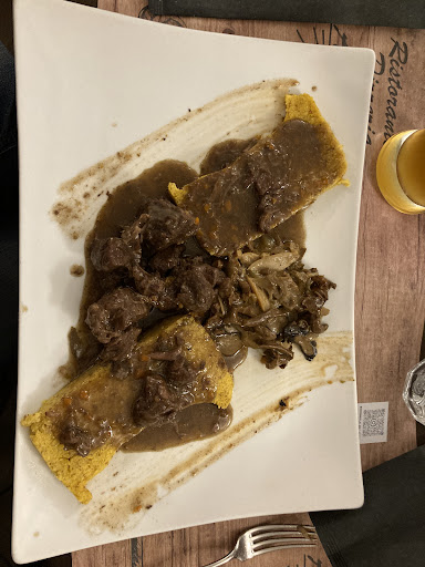 The food is of good quality: the pizza, though not exactly to my taste, was well made, while the calzone was particularly enjoyable. We also ordered meat and soup, both well prepared. The venison portion was adequate, though perhaps a slightly larger serving would have been even better. The blonde beer was excellent.