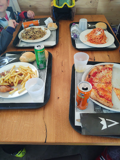 Inizio subito con il punto dolente (che ricorda un po' Dante prima di entrare all'inferno!!!), il cibo del self service è molto COSTOSO (13,50 pasta, 2€ acqua, da 8,50€ pizza, 3,50€ lattina) ma soprattutto IMMANGIABILE per un italiano che sa che gusto ha la pasta!! Pasta al sugo rosso, pasta al sugo di cervo, orecchiette con pesto e sugo praticamente immangiabili, fredda, asciutta e il sapore terribile. Un vero peccato, sicuramente non torneremo mai più per il pranzo!! L'unico fortunato del gruppo (di 7 persone) chi ha scelto la cotoletta con le patatine fritte (surgelate) (14€) che era buona.