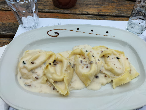 Ordino la torta di zucca, quando mi arriva sembra alla vista e al naso parecchio cioccolatosa. Nel menu c'era anche una torta al cioccolato e pane allora chiedo per sicurezza se non ci fosse stato un errore. La signora mi dice che no, nella torta di zucca c'è anche del cioccolato. A me il cioccolato non dispiace e me la mangio (anche perché l'ho già pagata euro 4.50), ma resto insoddisfatto perché volevo proprio una torta che sapesse di zucca. Per inciso io faccio il cuoco da 12 anni e penso che per chi fa il nostro mestiere l'opinione del cliente deve contare sempre, a partire da un semplice caffè fino ai piatti più elaborati, che tu sia di passaggio o meno, quindi a costo di risultare pedante nn faccio mai buon viso a cattivo gioco. Perciò riporto il piatto e faccio presente che la torta sapeva ben poco di zucca e tanto di cioccolato. A quel punto mi dicono che era colpa della manona del responsabile che ci aveva buttato per errore troppo cioccolato. Una bella risata di gruppo e per loro tutto risolto. Ma dico io, non potevate dirmelo prima? Magari ci avrei ripensato, no? Io da professionista mi sarei comportato diversamente, dispiaciuto magari avrei cercato di recuperare con qualcosa di più che la schietta simpatia, a volte basta solo offrire un caffè (e magari usare la bilancia che per gli ingredienti dei dolci è fondamentale). E poi assaggiarli prima di metterli in carta, che come torta al cioccolato sarebbe stata buonissima! Detto questo il posto è bello e accogliente, con fontana e un gran prato perfetto per una sosta durante la...