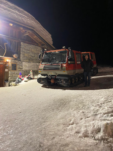 Cena tra amici, sabato sera. Ci portano con il gatto delle nevi (5€ a testa) e al primo impatto il locale ci sembra molto bello, con un bel panorama.