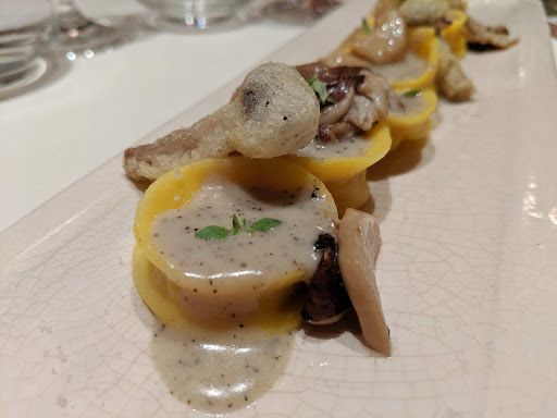 Non ero molto soddisfatto dopo il mio pasto. The restaurant was nice for first impression walking in, once we followed our waiter though the restaurant we walked up a flight of stairs though the reception of the hotel and then to a small room. I found that it was strange the way the restaurant was separated. The food was nice beautifully prepared but some plates were just a little too elegant. The waiter nice and knowledgeable of the menu and wines at the beginning of the meal but we noticed he had some friends at the table next to us. One of the girls we overheard he was trying to hook up with. It wasn’t until dessert when he decided to sit down at their table and it was disturbing and was very unprofessional. He started cussing and flirting with the girls. We then had to interrupt him to ask for our bill because he clearly forgot we were in the room right behind him. It was not closing hour and no he didn’t end his shift. I think it’s because we were a young couple that he thought we would be ok with it. To go to a restaurant and spend €140 and have that type of mannerism from a server at the end of a meal...