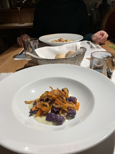 Read moreLa cena si è svolta nel ristorante dell'albergo e non nella Stube dedicata, ben più suggestiva e accogleinte. La denominazione dei piatti sul menù sembra attraente (millefoglie di pasta, tagliata di frutta, ...), ma, in realtà si tratta di piatti banalissimi quali lasagne dal gusto indecifrabile (avrebbero dovuto contenere tomino, zucca e castagne) e semplice macedonia! Il prezzo non era affatto adeguato alla qualità e porzioni servite. In particolare il prezzo dei dolci (14 euro) è spoporzionato, come hanno sperimentato i commensali che, sfortunatamente, hanno scelto il bignè di nocciola e gianduia: secco, di modestissime dimensioni e insapore. Gli spaghetti alla chitarra, poi, fortemente raccomandati dalla cameriera, sono arrivati freddi a tutti e 3 i commensali che l'avevano ordinata. La dome di polenta di Storo alla barbabietola, proposta come secondo piatto, era, a malapena, adeguata per un fugace antipasto. Il menù, nonostante fosse un sabato di piena stagione sciistica, era incompleto, come hanno sottolineato i camerieri. Di sabato, in stagione, a Madonna di Campiglio?? Infine, i vini. Non ce n'era nessuno sotto i 45 euro e stiamo parlando di Merlot e Nosiola, non champagne o Sassicaia. Risultato: solo 2 piatti a testa (senza caffè o grappa finali) e due bottiglie in 6, 460 euro!! Non torneremo mai più. Speriamo che questa recensione serva ad evitare che altri inconsapevoli turisti caschino nel tranello delle belle parole scritte sul sito del ristorante Il Convivio di Madonna...