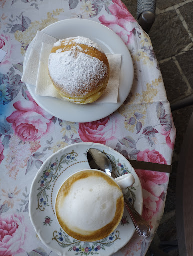 Oggi visto la giornata nevosa decidiamo di fermarci con la mia famiglia in questo bar pasticceria dopo aver letto alcune recensioni e incuriositi dalla bella vetrina dove sono esposti vari dolci tra torte biscotti gelati.... Il locale è molto bello, accogliente e caldo abbiamo ordinato una fetta di torta linzer, una di strudel e una di frutti di bosco, poi chiedo gentilmente se posso avere un bicchiere di acqua calda e già qui iniziano le difficoltà, la cameriera storce un po' il naso e mi dice che non sa se si può,(non ci vuole molto con la lancia della macchina del caffè a scaldare un po' di acqua) allora le dico che se è un problema va benissimo a temperatura ambiente,e difatti arriva così, poi arrivano le fette di torta di media qualità, niente di eccezionale, la cosa però che mi ha veramente deluso è stato vedere la signora (probabilmente la titolare) che dietro al bancone nella vetrina dei dolci per sistemare le torte con grande disinvoltura con la mano sinistra toccava tutte le fette e le porzioni rimaste per sistemarle da un vassoio all'altro,e per giunta poco prima si era starnutita sulle mani,mia moglie ha osservato attentamente anche perché lei stessa lavora in un bar e sa bene come funziona. Non si fa ASSOLUTAMENTE tantomeno in sala davanti ai clienti. Poca professionalità poca pulizia e igene.Avevamo pensato di dirglielo al momento del pagamento ma onde evitare polemiche o di attirare l'attenzione di altri clienti seduti proprio davanti alla vetrina abbiamo evitato. Davvero una brutta caduta di...