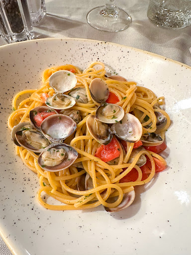 We had a really lovely mix of red and whites, and ending with a sweet dessert wine, all were delicious. Delightfully excellent squid ink spaghetti with clams, fettuccini with tomatoes and squid, paired with a pear salad and super yum duck main. Best duck ever with what seemed like roasted potatoes in duck fat, yum. Ended off with their unique tiramisu in a glass and tarte,...