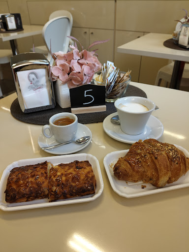 Read moreCroissant 🥐molto buoni, abbiamo entrambi preso con la marmellata (uno l'hanno farcito al momento, molto molto ben farcito) e in più ho preso una pastina panna e cioccolato. Abbiamo bevuto un cappuccino ☕️ e un succo alla pesca 🧃. Tutto molto buono! Do 4 stelle solo perché abbiamo trovato un po di confusione: la cassa è attaccata al bancone dove ti servono ed è piccolissimo all'interno, quindi bastano 3-4 persone e non si riesce più a passare dalla porta e si crea disordine. Apparte questo abbiamo mangiato molto bene e anche cappuccino e succo erano buoni! Bravissimi, peccato per il poco spazio, ma ciò che offrono merita...