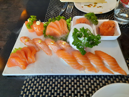Il cibo giapponese era impiattato in maniera approssimativa a volte si scaldava per l'attesa e personalmente il pesce crudo preferisco mangiarlo più freddo i sashimi erano sempre annacquati l'utilizzo discutibile della maionese su quasi tutti i roll qualche maki era fatto frettolosamente e mancava proprio del pesce il pesce non dava l'idea di essere fresco e di qualità