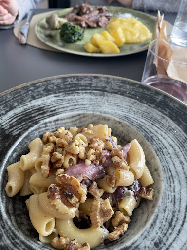 Great value, sublime food and a good selection of the menu. The staff is polite and friendly and they let us in with our puppy. We ordered macaroni with gorgonzola, radish and walnuts, excellent texture of the pasta and a strong taste of the ingredients. The meat was tender and tasty, served with polenta, potatoes, artichokes and cooked vegetables, all of exceptional quality. Also excellent choice of music between swing, bebop...