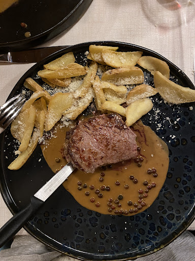Read moreIl filetto di manzo al pepe rosa (Beef filet with pink pepper) with home made fries was very good, "medium" was nearly med-rare, but tender, very juicy, not bloody. The service was also very good explained all questions in english. My wife had a Pizza "Crudo e Rucola" plus a mixed salad which was so big we could easy share. And for sharing the service recommend an extra plate. With a glass of wine and a big beer plus one Tiramisu and two espressi we payed about 50€...
