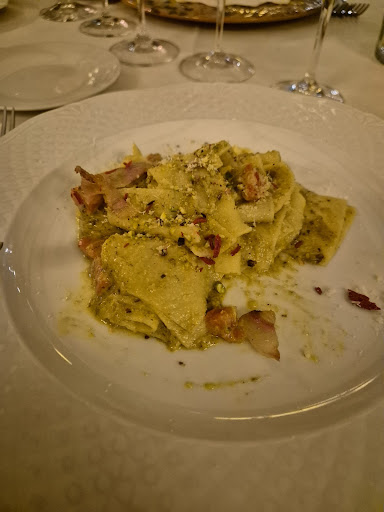 Ciliegina finale: finito il pasto, ci alziamo per andare a pagare e terminare "l'esperienza" e il proprietario, seduto al tavolo a importunare una famiglia tedesca, ci guarda e ci dice: "ragazzi, dove andate sedetevi, godetevi la serata e la musica, che il conto tanto devo farvelo io e non ho voglia di alzarmi adesso". Morale della favola, abbiamo aspettato mezz'ora al tavolo mentre lui finiva la sua conversazione indesiderata e ci degnava della sua presenza. 117 euro per due antipasti piccolini, due primi divisi a metà, due dolci e una bottiglia di vino (tutto scelto da lui).