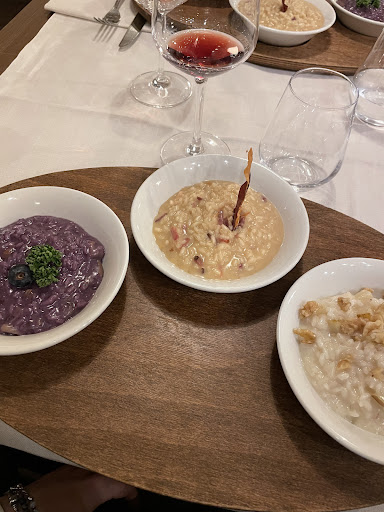 Restaurant in a beautiful surrounding specializing in risotto and gnocchi. We had the pumpkin and nduja risotto and the gnocchi with stracciatella and shrimps. Both were delicious and cooked to perfection although the nduja in the risotto was a bit overpowering making it difficult to make out the pumpkin flavor. The staff accommodated for the kids’ pickiness with a penne with butter sauce. For dessert we had the tarte tatin which was excellent. Service was however on the slow side but it was quite busy. Generally though I would not recommend...