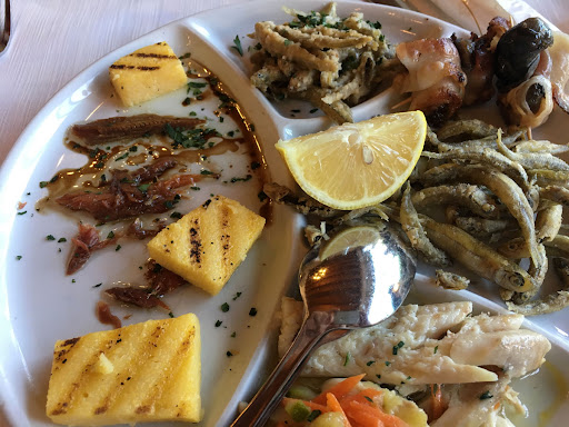 Gli antipasti di pesce erano abbondanti e deliziosi. Buone anche le lumache di terra. Le varie preparazioni avevano ciascuna un gusto diverso ed unico. L'agone "in saor" (fuori menù) era quasi un piatto a sé più che un antipasto.