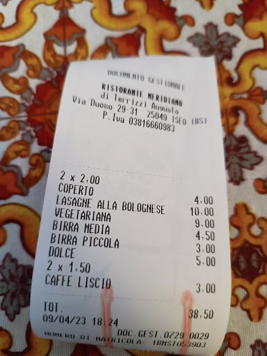 My girlfriend and I spent a week in Iseo and Il Meridiano was one of the restaurants we went to. We had a table outside, right at the street. The atmosphere there is great.🙂 We ordered a pizza, which was very good. But even better was the sea bass (branzino) that we had. It came with some mussels, which was surprising to us at first. But they were really delicious and especially the sauce was just perfect. The service is great and our waitress was really nice. A couple of days after our first visit we came back to order two pizzas for take away. We took them to a bench at the shore of the lake and enjoyed them with some white wine. Especially the Pizza Meridiano (with fresh tomatoes, rucola and different kinds of cheese) just...