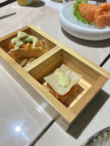 Read moreHo provato tantissimo sushi della zona e questo è il più caro (29,90€ + 2€ di coperto + bevande escluse e care, una bottiglia d'acqua da 0,75 a 4€) e anche uno dei peggiori (il gusto delle pietanze non era qualitativamente soddisfacente) nonostante sia aperto da pochi giorni e quindi dovrebbe essere a maggior ragione il top come prodotti e servizio. Invece gli ambienti sono già poco curati come il pavimento appiccicoso al passaggio sia vicino al nostro tavolo che nei bagni. Il servizio è confusionario, ordinando più pezzi dello stesso prodotto non arrivano mai insieme. Il sistema di ordine è il più scomodo mai visto, con il proprio cellulare ci si collega al loro WiFi e si ordina con un codice tavolo. Il problema è che i tavoli vicini potrebbero sbagliare e ordinare con il nostro codice (come è successo) e quindi arrivano piatti mai ordinati. Vista la posizione è solo una trappola per turisti. Non ci tornerò e lo...