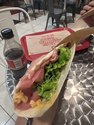 Nonostante sia una catena, questo locale riesce a superare di gran lunga gli altri. L'atmosfera accogliente con un bancone, tavoli e una sala con svariati posti permette a chiunque di trovare il posto che preferisce per mangiare sia da solo che in compagnia. Il personale è fra i più cordiali che abbia mai visto, è impossibile non provare simpatia nei loro confronti. Solo vedendoli lavorare mettono allegria a chiunque! Ovviamente il punto più importante è la qualità del cibo, che eccelle per una semplice piadineria. La scelta è varia ed esiste la possibilità di creare varie combinazioni in base a ciò che si preferisce, creando la propria piadina personalizzata. Sono disponibili anche impasti integrali e con farina di kamut. Inutile dire che ci tondo ogni settimana dalla prima volta in cui ci sono stato. Uno dei migliori locali...