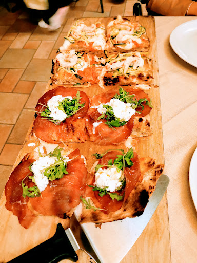 Read moreIn 4 con 2 cani. Servizio ottimo e attenzione al cliente altissima. Cardiali, disponibili a domande. Anche se pieni sono riusciti a trovare un posto per le 20:15. Molto gentili nell'ordinare. Hanno avuto la carineria di portare dei bastoncini per i cani. Abbiamo ordinato 4 pizze e delle patatine proposte da loro, una birra da 75cl, una coca cola da 1l e una bottiglia d'acqua. Hanno portato subito le patatine, che si sono rivelate molto buone, e il bere. Hanno avuto l'accortezza di bagnare il bicchiere prima di portare la birra e la coca cola era in bottiglia di vetro con ghiaccio e limone da parte. Dopo 10 minuti circa dall'ordinazione iniziale sono arrivate tutte le pizze. Hanno vari tipi di impasti che abbiamo provato, tutti molto molto buoni e gli ingredienti pure. Di seguito abbiamo ordina i dolci, variegati e apprezzata, per quanto non il nostro caso, la presenza come nel menu principale le indicazioni su cosa fosse per intolleranti al glutine. Presenza di ingresso per disabili e bagno attrezzato. Distanza trai i tavoli e locale luminoso e non rumoroso. Davvero una serata più...